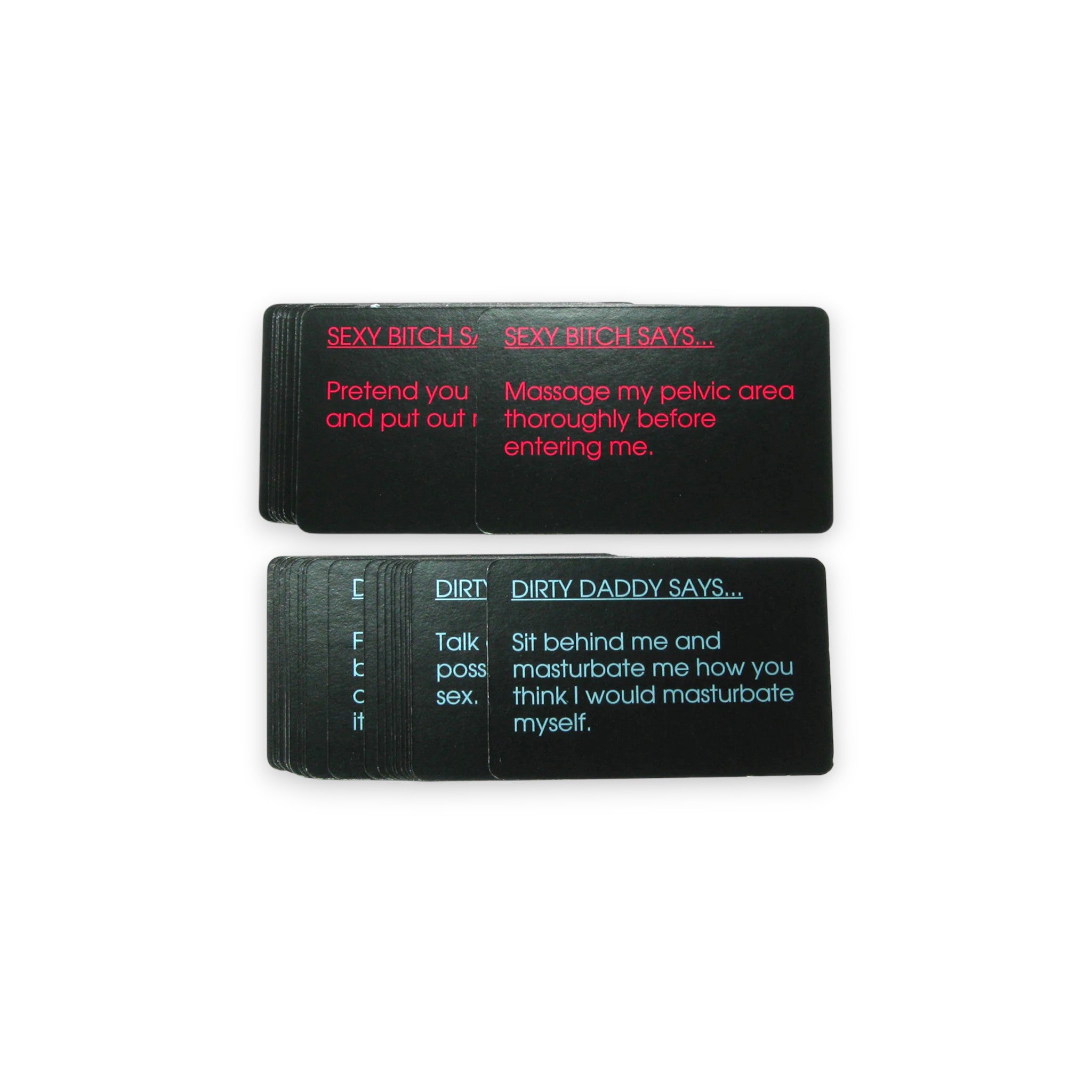 Bedroom Commands is a steamy deck of 108 cards split into two piles: Dirty Daddy and Sexy Bitch. Draw at random or sneak a card into your partner’s path for a surprise. With playful prompts ranging from teasing to downright daring—like “Teach me how to pleasure you with my fingers” or “Tell me your kinkiest fantasy and let’s act it out”—this game puts control, risk, and desire in your hands.