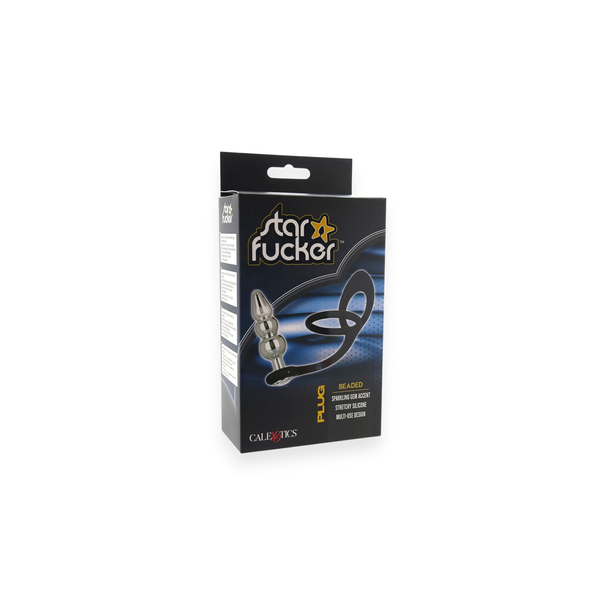 The Star F**ker Erection Enhancer and Beaded Plug combines anal stimulation with supportive constriction in one secure design. The two-piece set features stretchy silicone dual rings that fit snugly over the shaft and balls—or a strap-on base—paired with a bumpy aluminum plug that delivers teasing internal sensation. A sparkly crystal star at the plug’s base adds a bold decorative touch.