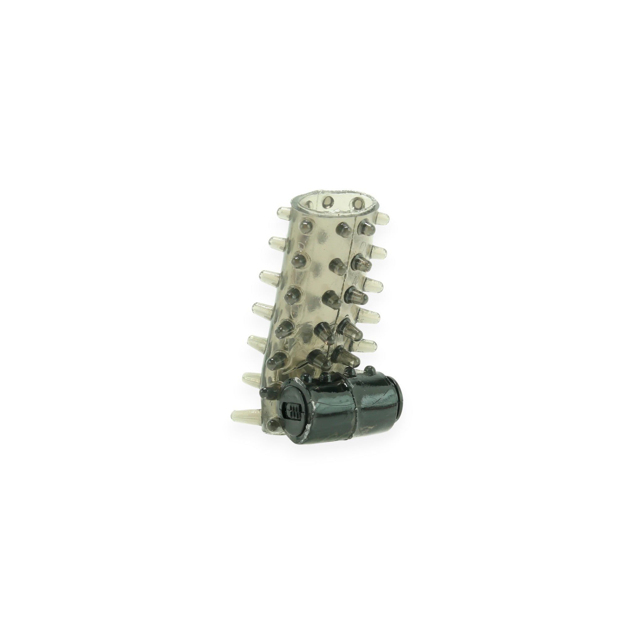 Combine constriction and stimulation with the Our Pleasure Vibrating Sleeve. Slip it over the shaft for enhanced firmness while the removable bullet delivers single-speed vibration to clitoris, perineum, or other outer sweet spots. Textured nubs add extra sensation for shared or solo play.